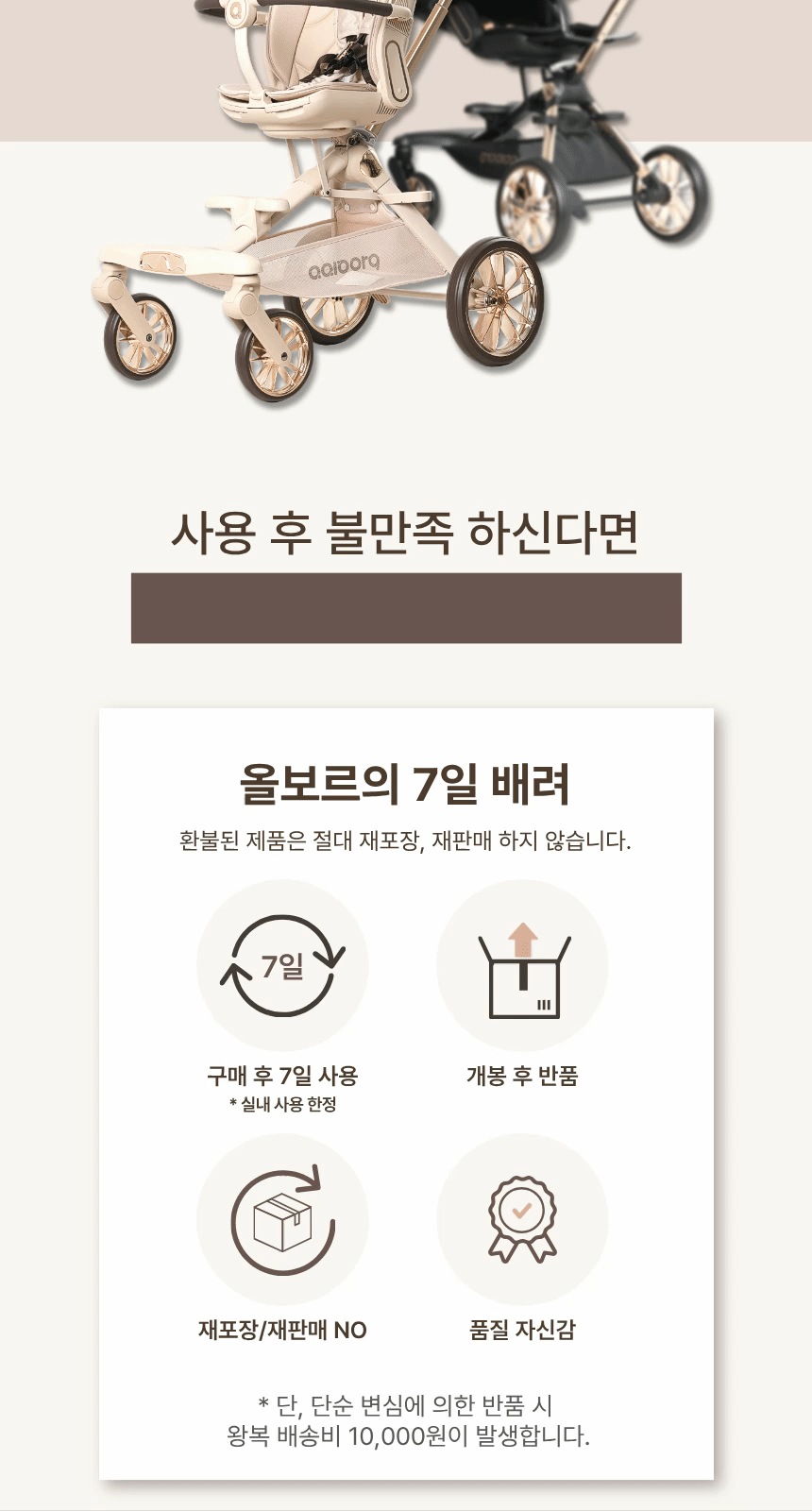 • ±¸¸ÅÀÚ »çÁ¤À¸·Î ±³È¯À̳ª ȯºÒÀ» ÇÒ °æ¿ì ¿Õº¹ ¹è¼Û·á´Â ±¸¸ÅÀÚ ºÎ´ãÀ̸ç, »óǰ¿¡ ÀÌ»óÀÌ Àְųª À߸ø ¹è¼ÛÀÌ µÈ °æ¿ì¿¡´Â ¿Õº¹ ¹è¼Û·á¸¦ (º£À̺ñ½ºÅä¾î(ÁÖ)) ÀÌ ºÎ´ãÇÕ´Ï´Ù.