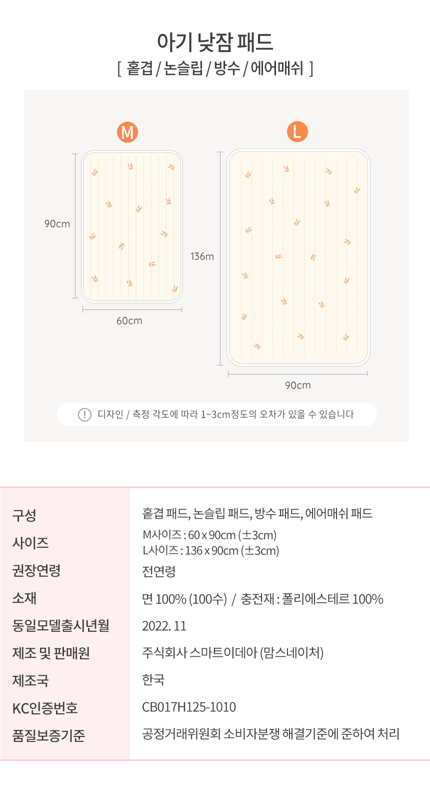 ¸¾½º³×ÀÌó 100¼ö ´©ºö ħ´ë ÆÐµå ÀÚ¼ö ÀÌºÒ À¯¾Æ ¾Æ±â ¸ÅÆ® ³·ÀáÀÌºÒ ¹æ¼öÆÐµå / ÁßÇü